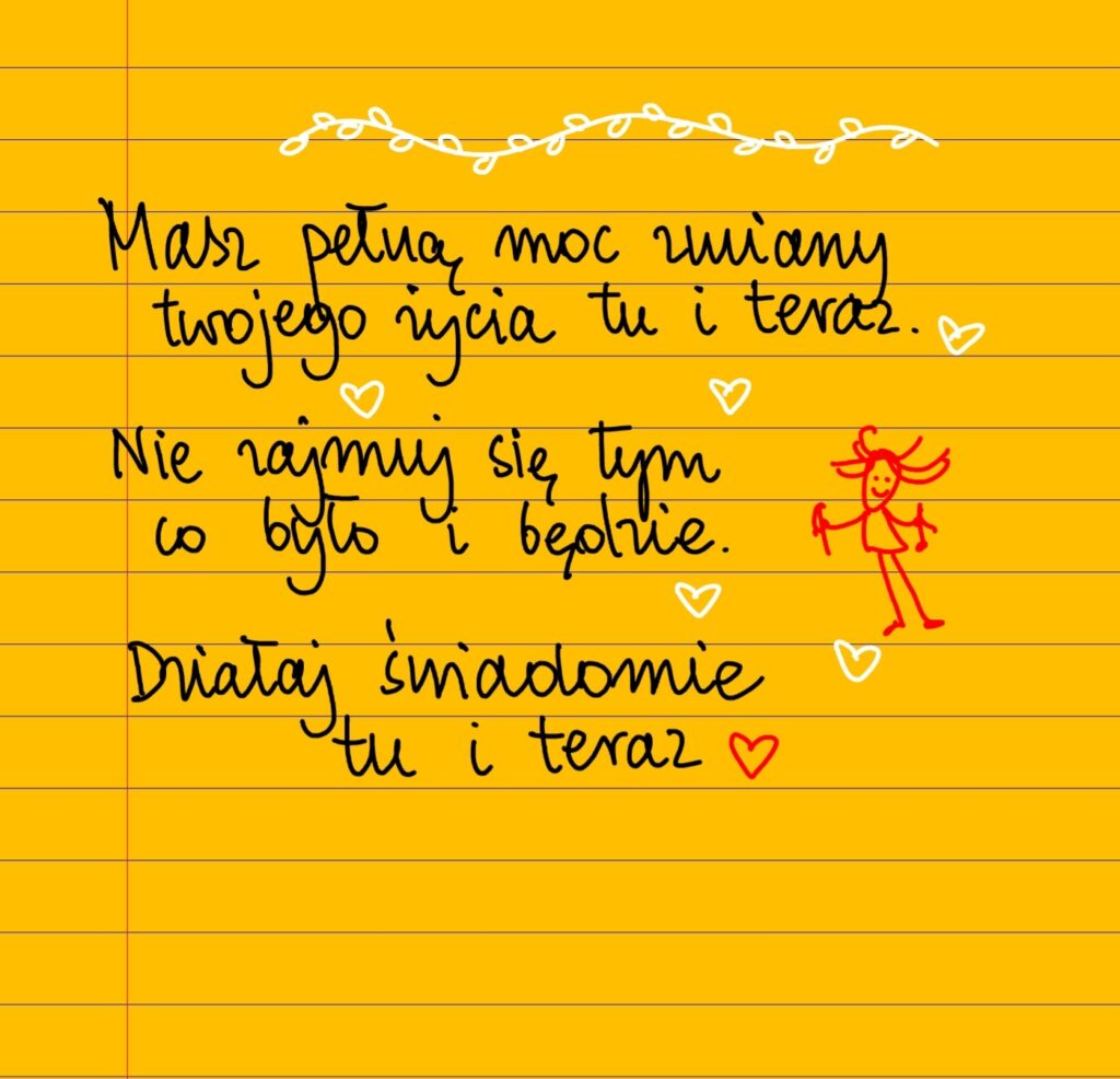 Masz pełną moc zmiany twojego życia tu i teraz. Nie zajmuj się tym co było i co będzie. Działaj świadomie tu i teraz ❤ #żółtakartka #beatapawlikowska