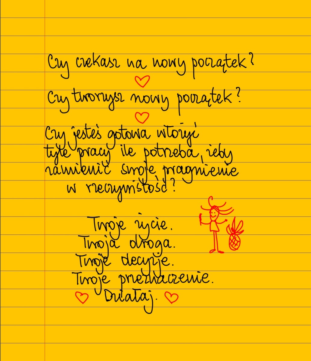 Czy czekasz na nowy początek? Czy tworzysz nowy początek? Czy jesteś gotowa włożyć tyle pracy ile potrzeba, żeby zamienić swoje pragnienie w rzeczywistość? Twoje życie. Twoja droga. Twoje decyzje. Twoje przeznaczenie. Działaj ❤ #żółtakartka
