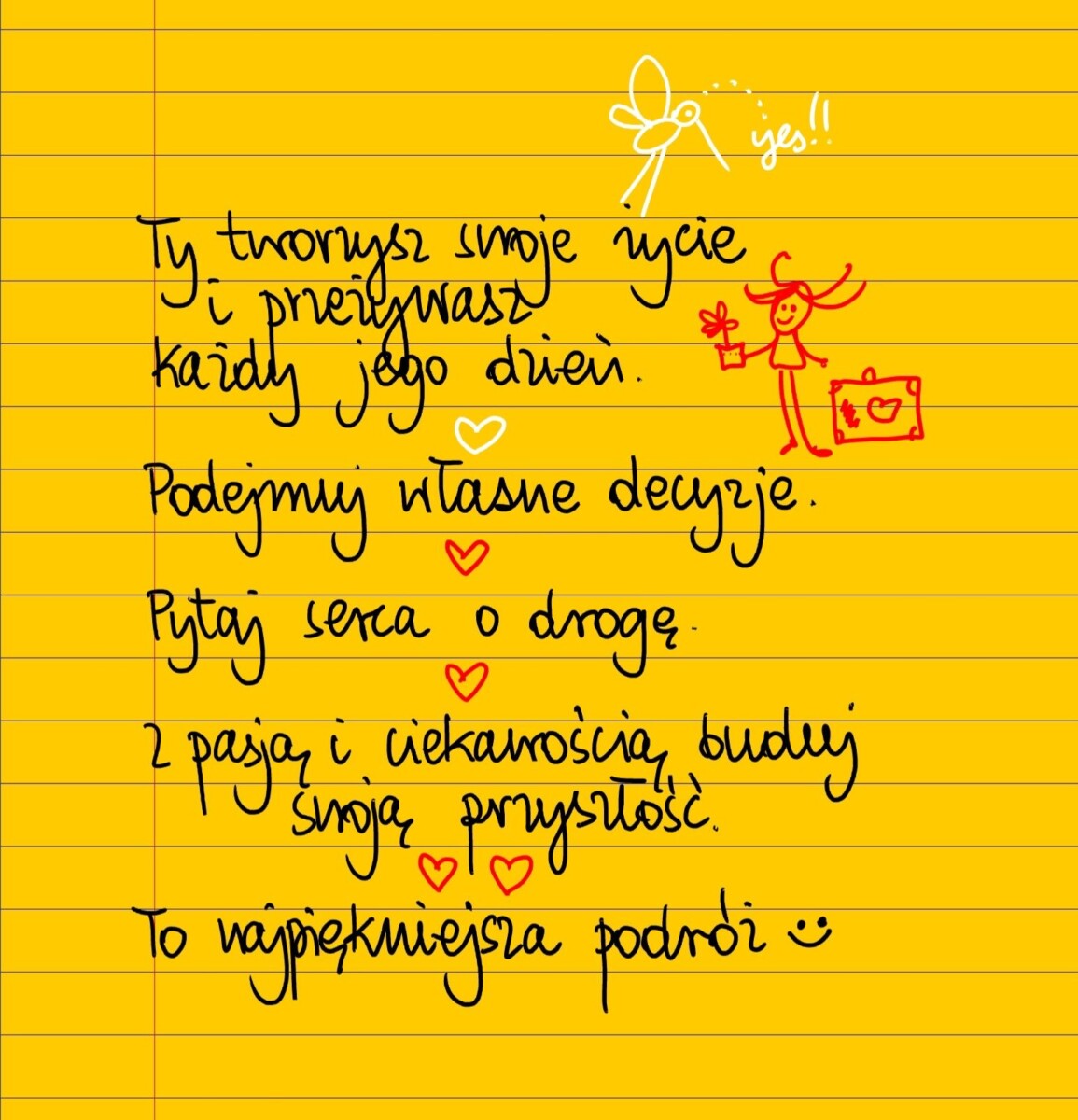 Ty tworzysz swoje życie i przeżywasz każdy jego dzień. Podejmuj własne decyzje, pytaj serca o drogę, z pasją i ciekawością buduj swoją przyszłość. To najpiękniejsza podróż 😊 #żółtakartka