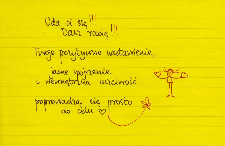 Uda ci się!!! Dasz radę!!! Twoje pozytywne nastawienie, jasne spojrzenie i wewnętrzna uczciwość poprowadzą cię prosto de celu. #żółtakartka