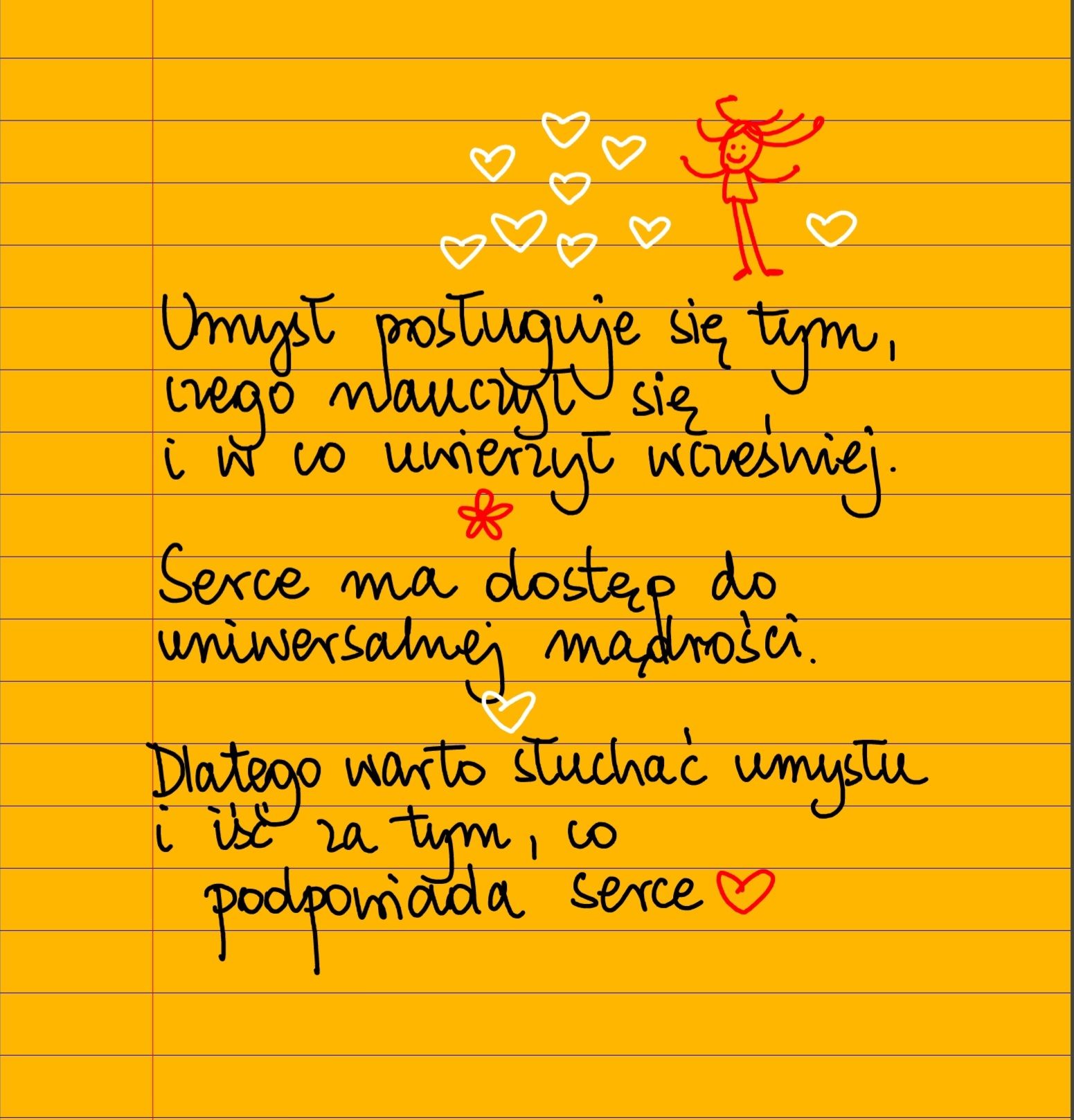 Umysł posługuje się tym, czego nauczył się i w co uwierzył wcześniej. Serce ma dostęp do uniwersalnej mądrości. Dlatego warto słuchać umysłu i iść za tym, co podpowiada serce. #żółtakartka