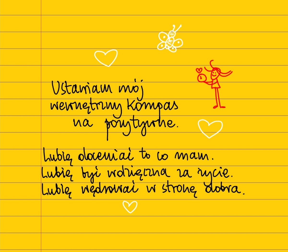 Ustawiam mój wewnętrzny kompas na pozytywne. Lubię doceniać to co mam. Lubię być wdzięczna za życie. Lubię wędrować w stronę dobra. #żółtakartka