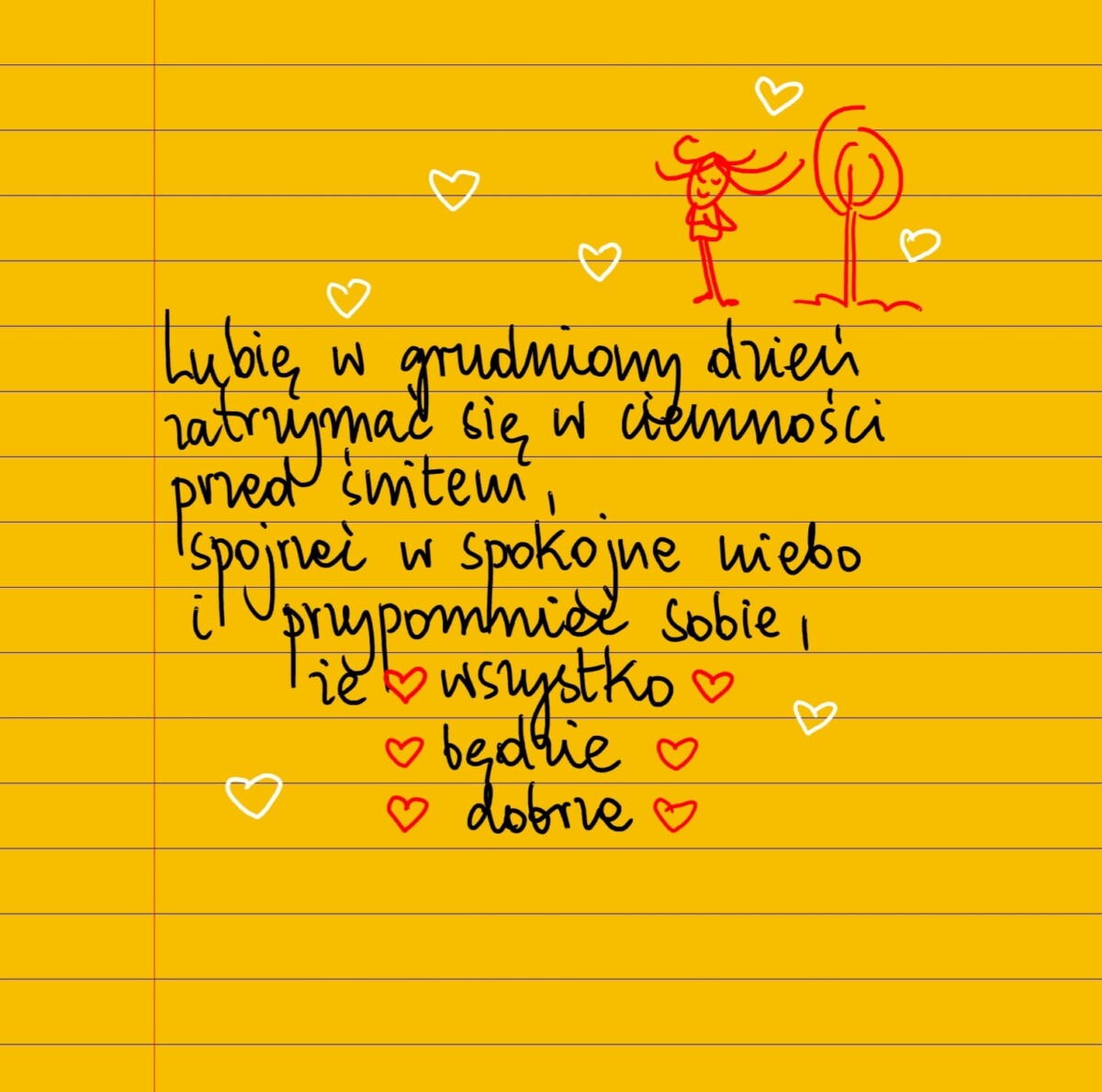 Lubię w grudniowy dzień zatrzymać się w ciemności przed świtem, spojrzeć w spokojne niebo i przypomnieć sobie, że ❤wszystko ❤ będzie ❤ dobrze ❤ #żółtakartka