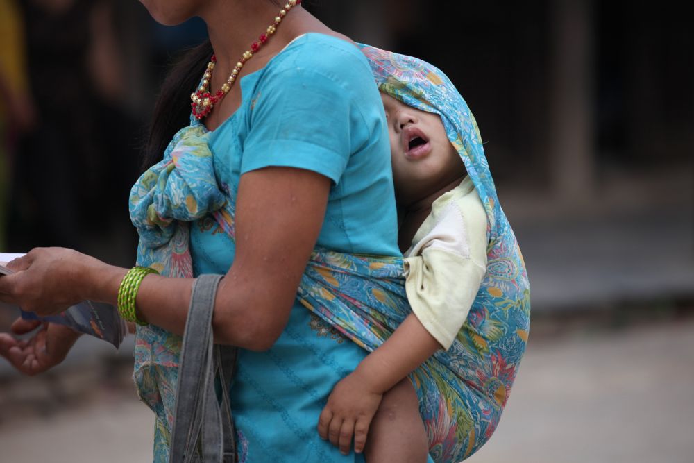 Dzieci noszone w chuście blisko ciała są zwykle bardzo spokojne fot. Beata Pawlikowska