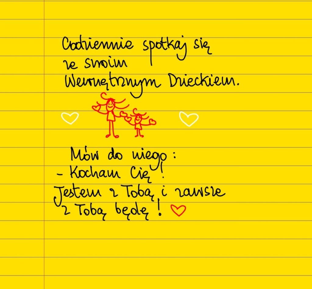 Codziennie spotkaj się że swoim Wewnętrznym Dzieckiem. Mów do niego: – Kocham Cię! Jestem z Tobą i zawsze z Tobą będę! 🙂 #żółtakartka