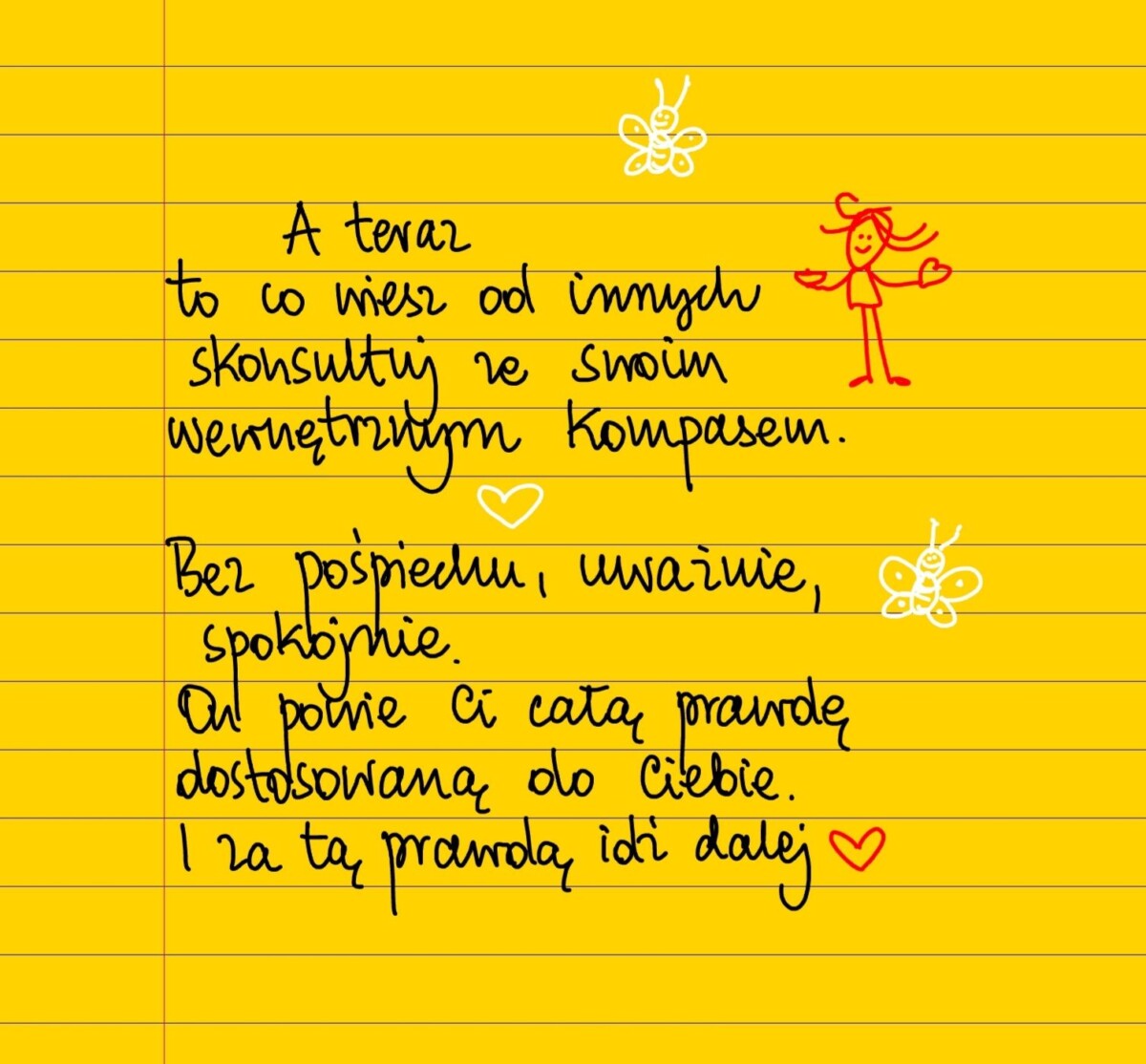 A teraz to co wiesz od innych skonsultuj ze swoim wewnętrznym kompasem. Bez pośpiechu, uważnie, spokojnie. On powie ci całą prawdę dostosowaną specjalnie do ciebie. I za tą prawdą idź dalej. #żółtakartka