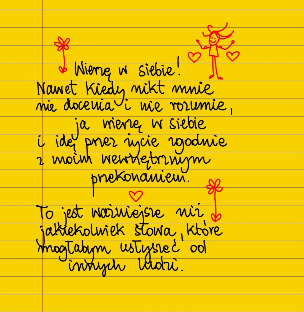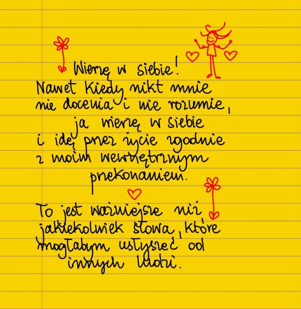 Wierzę w siebie!!! Nawet kiedy nikt mnie nie docenia i nie rozumie, ja wierzę w siebie i podążam przez życie zgodnie z moim wewnętrznym przekonaniem. To jest ważniejsze niż jakiekolwiek słowa, które mogłabym usłyszeć od innych ludzi. #żółtakartka