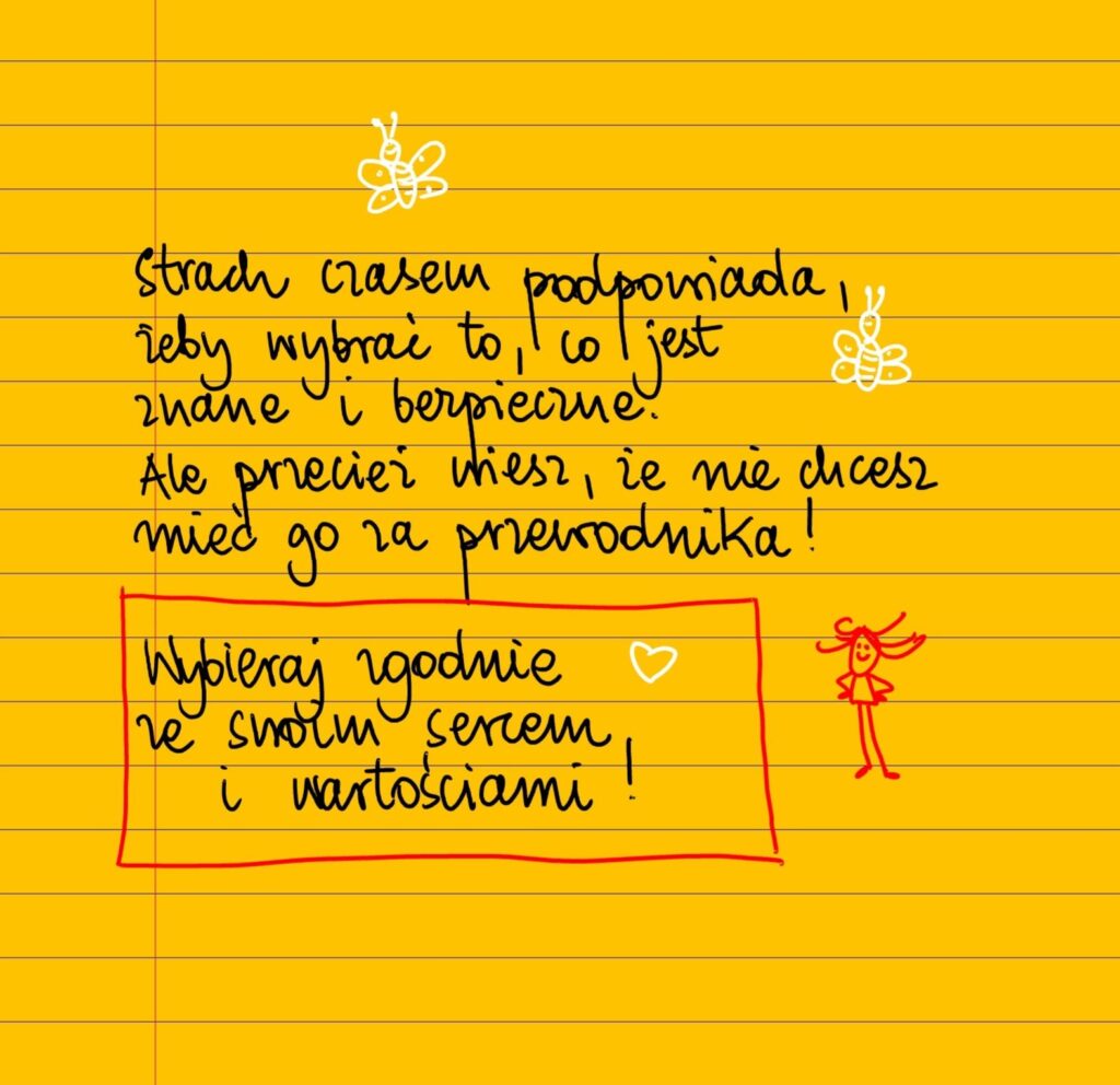 Strach czasem podpowiada, żeby wybrać to, co jest znane i bezpieczne. Ale przecież wiesz, że nie chcesz mieć go za przewodnika. Wybieraj zgodnie ze swoim sercem i wartościami ❤