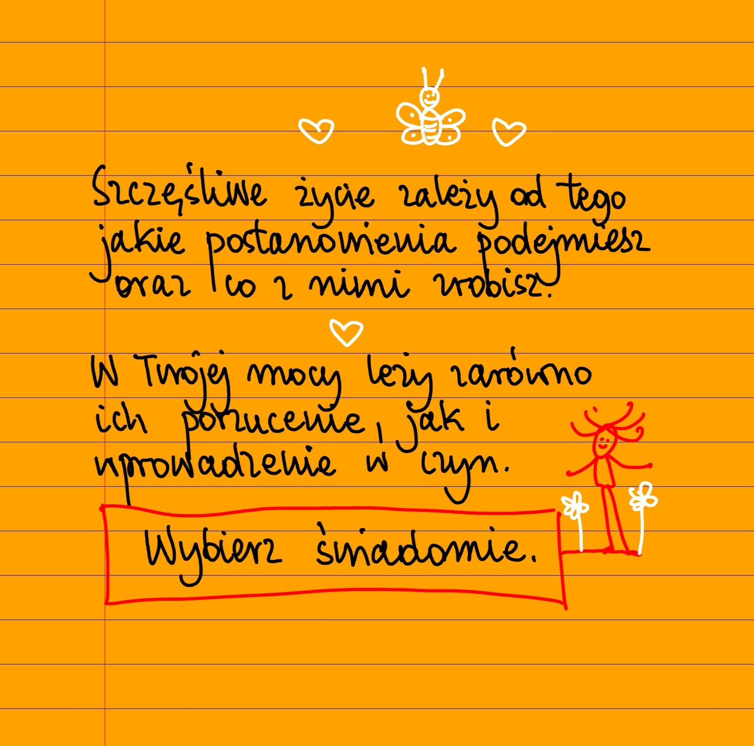 Szczęśliwe życie zależy od tego jakie postanowienia podejmiesz oraz co z nimi zrobisz. W Twojej mocy leży zarówno ich porzucenie, jak i wprowadzenie w czyn. Wybierz świadomie ❤