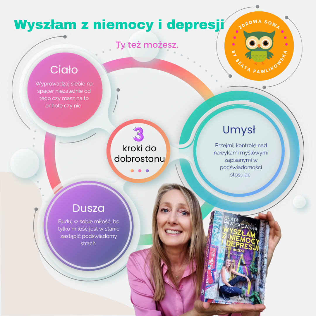 „Wyszłam z niemocy i depresji. Ty tez możesz”. Wydanie poprawione i uzupełnione o badania naukowe. Dostępne już teraz tylko w Zdrowej Sowie, https://zdrowasowa.pl/sklep/ksiazki/wyszlam-z-niemocy-i-depresji-beata-pawlikowska/