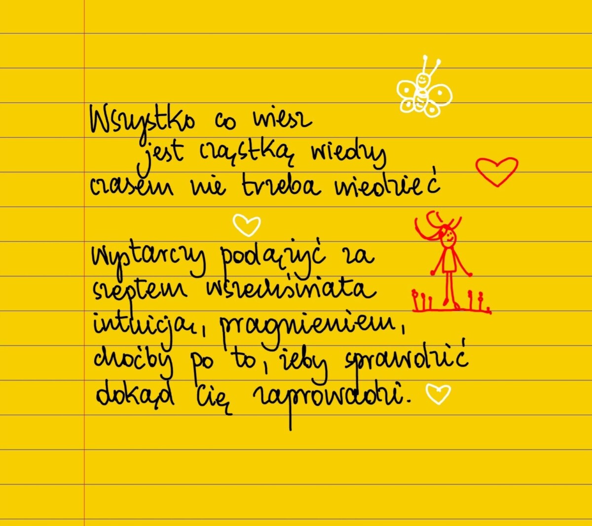 Wszystko co wiesz jest cząstką prawdy. Czasem nie trzeba wiedzieć. Wystarczy podążyć za szeptem wszechświata  intuicją,  pragnieniem, choćby po to, żeby zobaczyć dokąd cię zaprowadzi.
