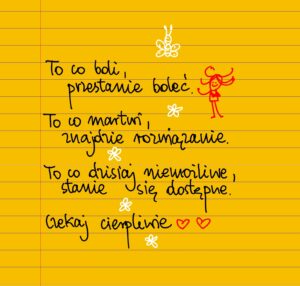 Ktoś w komentarzach napisał, że nie powinnam ukrywać ani tłumić „żalu, smutku i gniewu” z powodu wypadku na rowerze, złamanej ręki, zmiany planów podróżniczych, bólu i cierpienia, jakich doświadczam. Nie czuję smutku, żalu ani gniewu. Jestem człowiekiem. Życie przynosi nam różne doświadczenia. Na kogo miałabym się gniewać? Na Boga? Na życie? A czy nie dostałam od niego najcudowniejszych niespodzianek i prezentów? Tak, i za wszystkie jestem wdzięczna. Nie obrażam się na życie kiedy prowadzi mnie przez cierpienie. Wprost przeciwnie. Słucham go uważnie, uczę się z niego większej wrażliwości na innych, poznaję moje granice bólu i wytrzymałości. Życie daje nam tylko tyle cierpienia, ile jesteśmy w stanie unieść. Nie narzekam więc. Szukam w nim sensu.