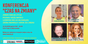 Tu znajdziesz więcej informacji o konferencji: www.czasnasukces.euKonferencja odbędzie w Och-Teatr, ul. Grójecka 65, 02-094 WarszawaW sobotę 12 października od 9.30.