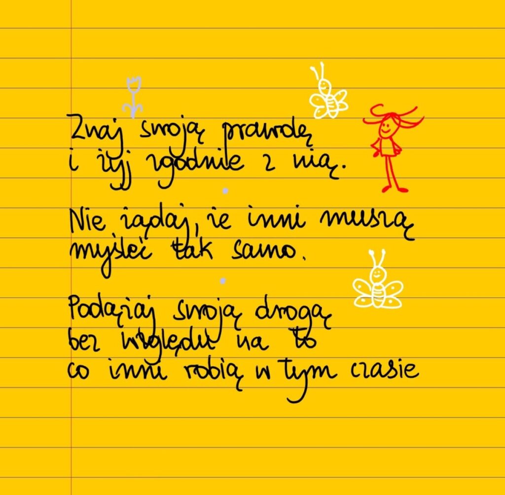 Znaj swoją prawdę i żyj zgodnie z nią. Nie żądaj, że inni muszą myśleć tak samo. Podążaj swoją drogą bez względu na to co inni robią w tym czasie. #żółtakartka
