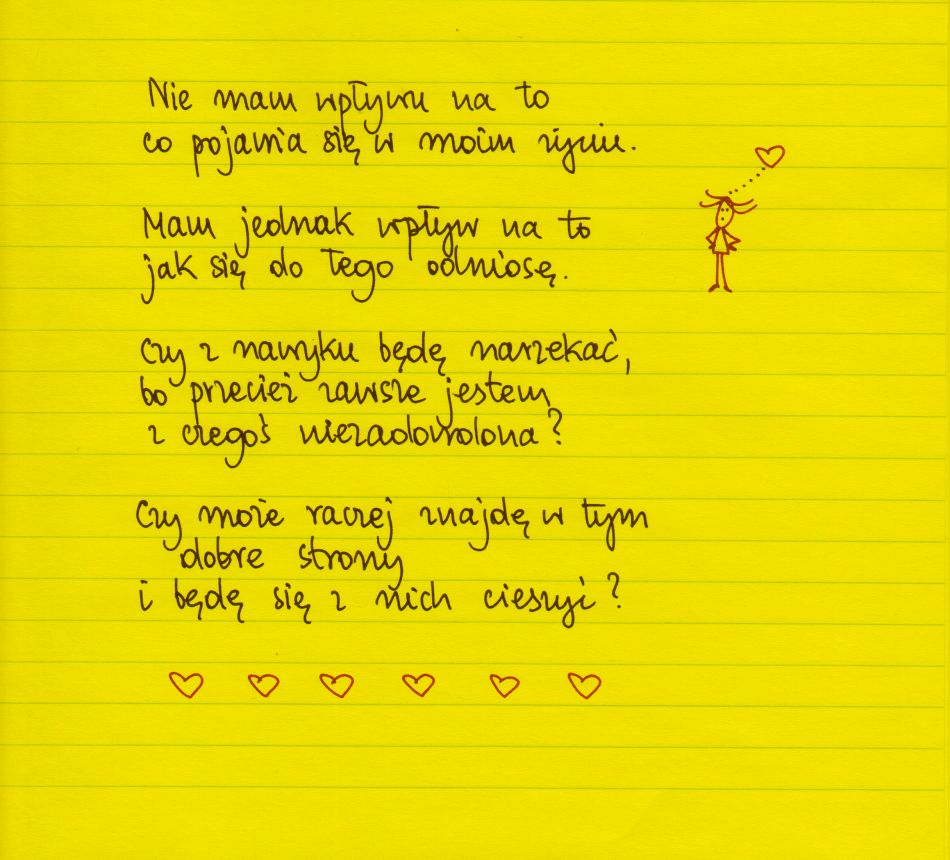 Nie mam wpływu na to co pojawia się w moim życiu. Mam jednak wpływ na to jak się do tego odniosę. Czy z nawyku będę narzekać, bo przecież zawsze jestem z czegoś niezadowolona? Czy może raczej znajdę w tym dobre strony i będę się z nich cieszyć? 🙂 #żółtakartka