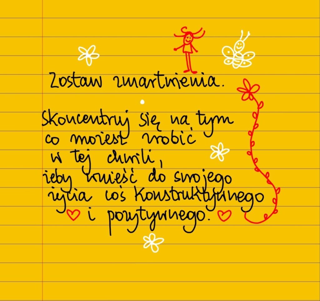 Zostaw zmartwienia. Skoncentruj się na tym, co możesz zrobić w tej chwili, żeby wnieść coś pozytywnego i konstruktywnego do twojego życia. #żółtakartka