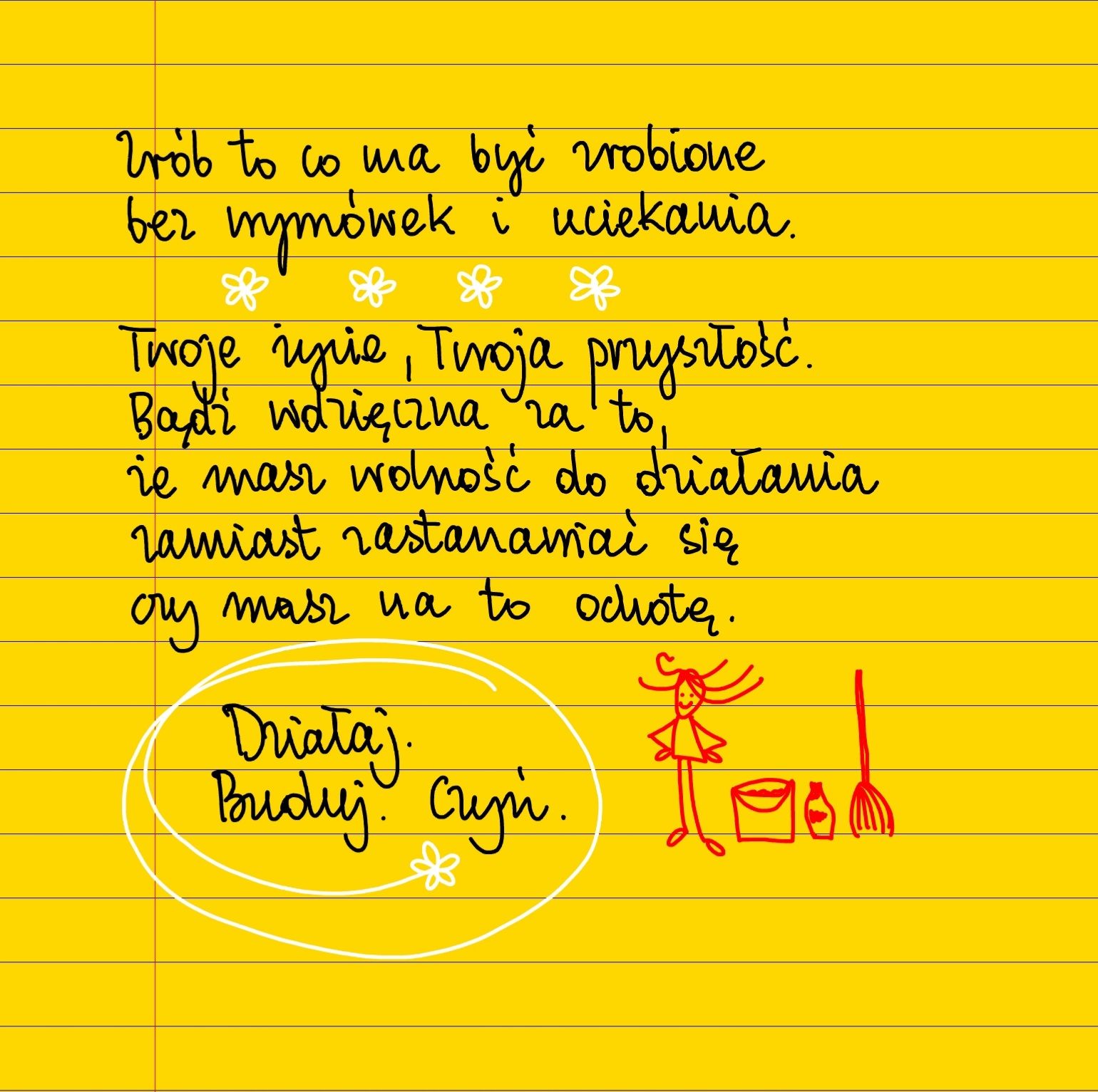 Zrób to, co ma być zrobione bez wymówek i uciekania. To Twoje życie i Twoja przyszłość. Bądź wdzięczna/bądź wdzięczny za to, że masz wolność do działania zamiast zastanawiać się czy masz na to ochotę. DZIAŁAJ. BUDUJ. CZYŃ ❤ #żółtakartka #beatapawlikowska