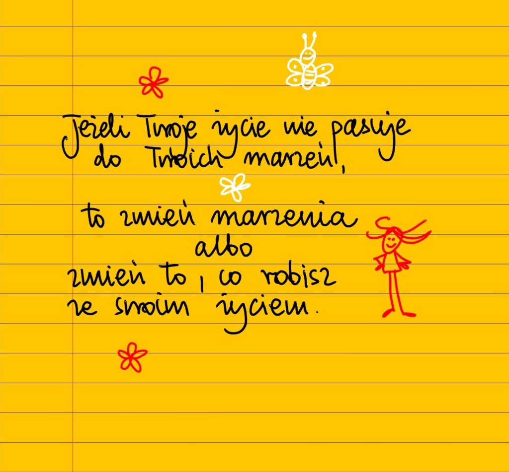 Jeśli twoje życie nie pasuje do twoich marzeń, to zmień marzenia albo zmień to, co robisz ze swoim życiem. #żółtakartka